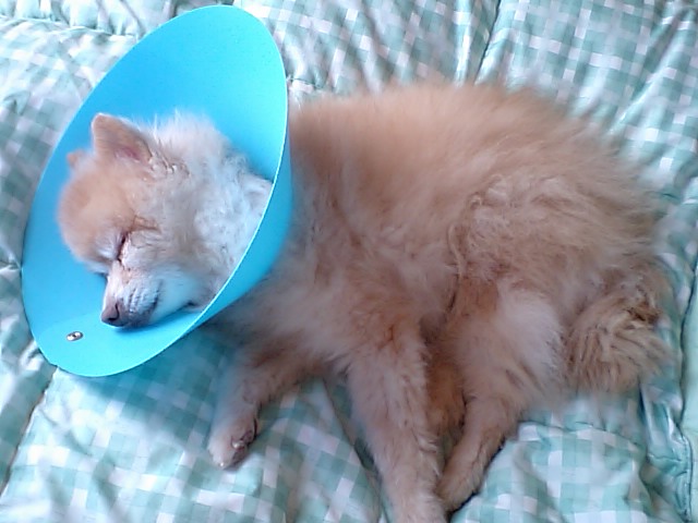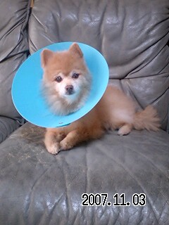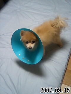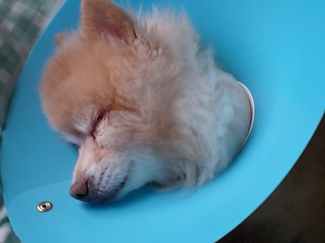 まだ角膜炎が治らず、家の中ではカラーを付けています。