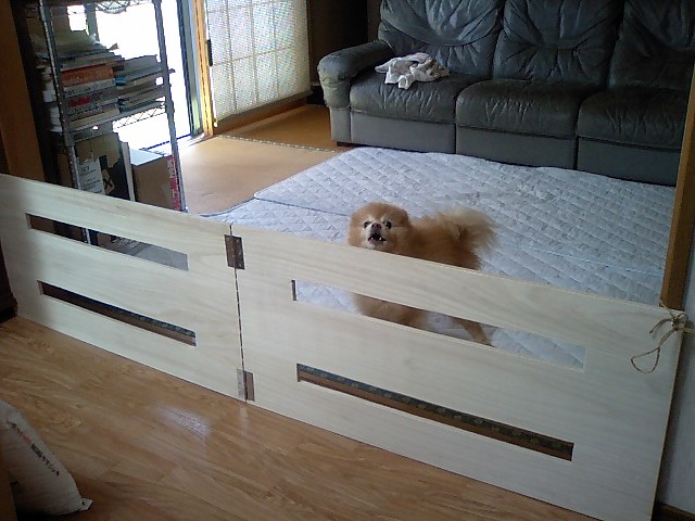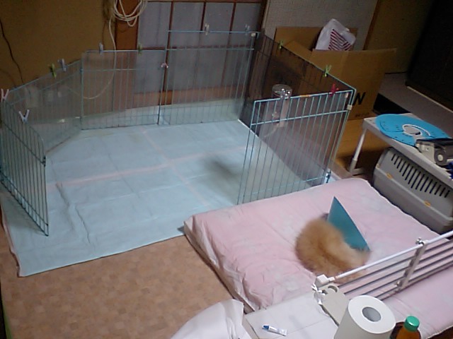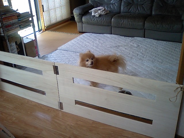 僕の部屋が変わりました。最近、リビングの床を舐めまわして、ゴミとか毛玉を食べる様になりました。年を取ったせいの様ですが、体に良くありません。そこで、隣の和室が僕の部屋になりました。ご主人様が仕切りの壁を作ってくれました。