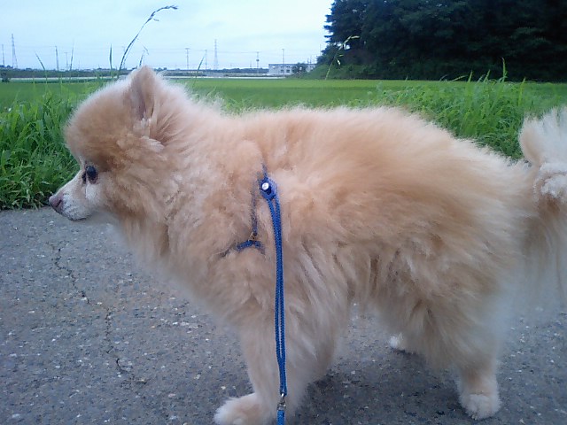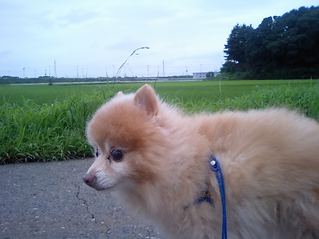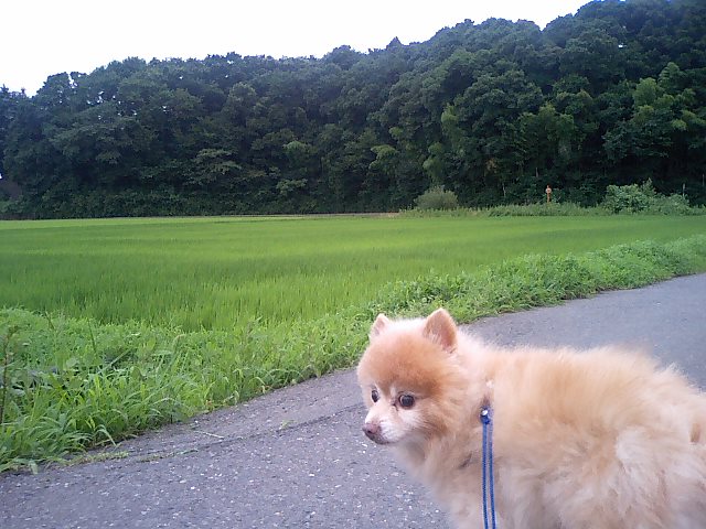 近くの田んぼまでご主人様と散歩に出かけました。田んぼの稲も大きくなっていました。