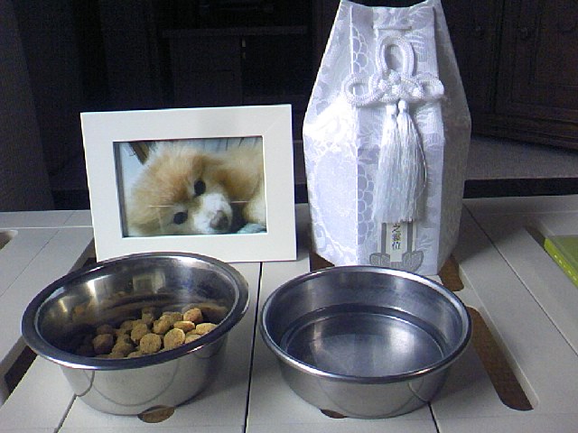昨日朝、僕は天国に旅立ちました。今朝、ご主人様と奥様に、近くのペット霊園で見送ってもらいました。1週間ほど前から嘔吐する様になり、4日前の血液検査の結果、腎不全と判り、一昨々日、一昨日と点滴を済ませたところでの突然の旅たちになってしまいました。17歳と5ヶ月でした。今まで応援をありがとうございました。